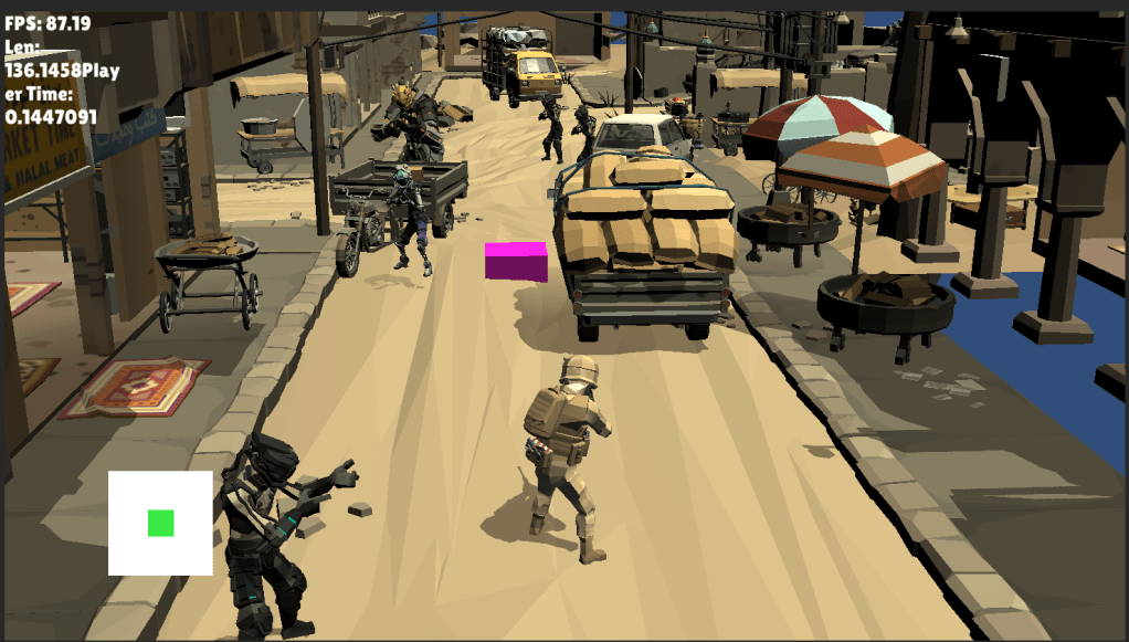 I was experimenting with a spline camera to move the main character and to handle the movement and targeting of the camera. I used to love the old Virtua Cop games from Sega and the fixed path means that I can control where the camera is and what’s visible in the scene.