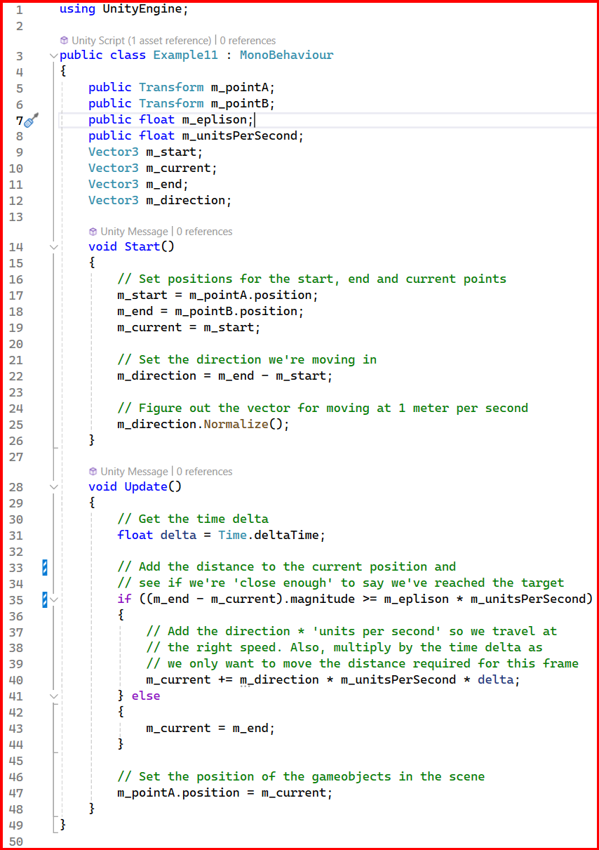 This is an example of how you’d move something from A to B at a linear speed. Very basic but I’m including it all…