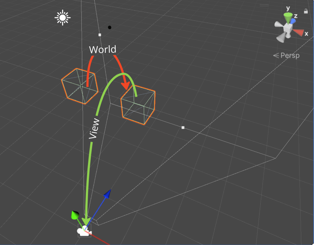 View: Next is the “View” transform. The “View” is the transform of the camera. We put everything in the World and then we View the world from a camera position.